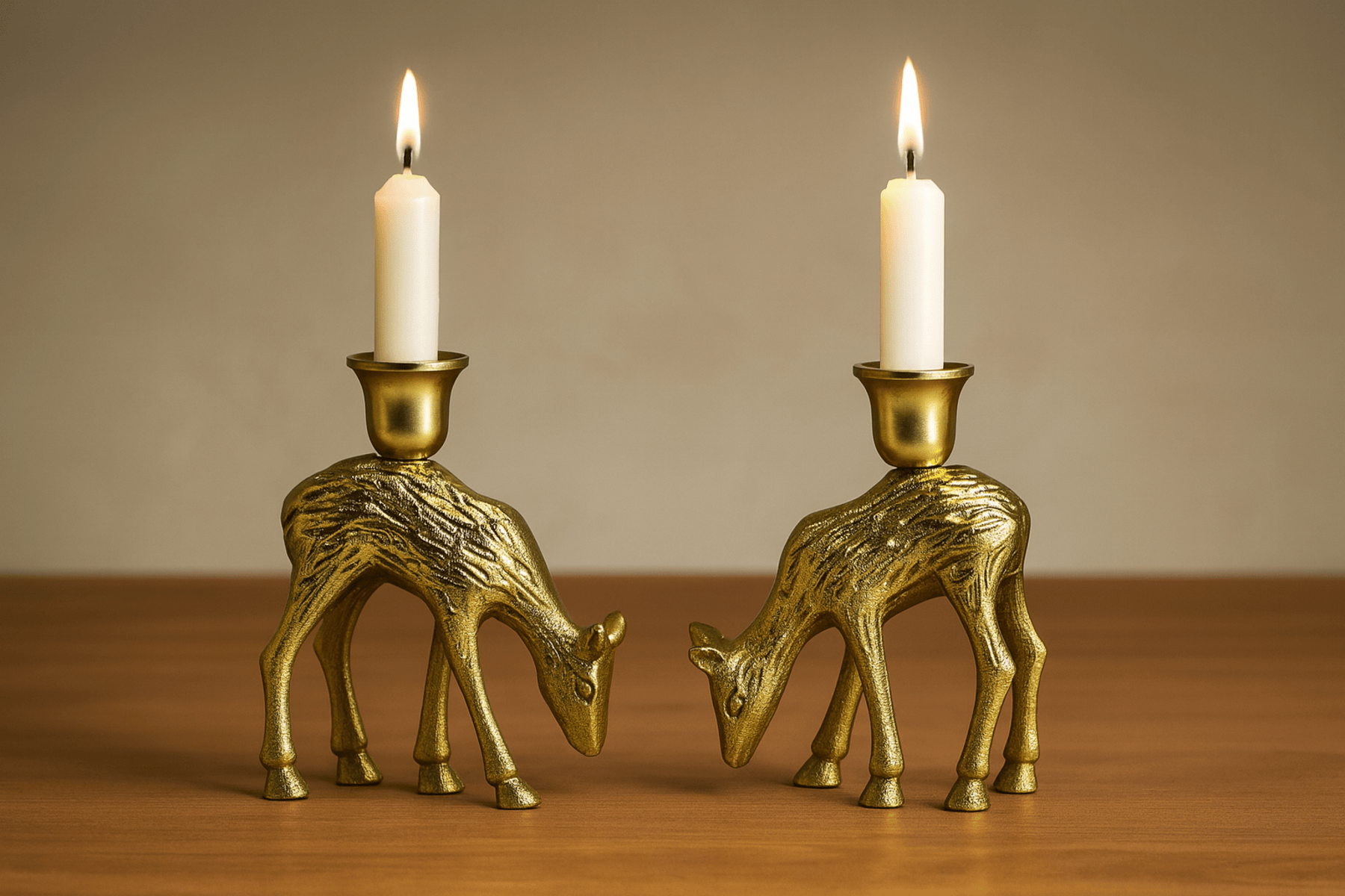 Artistic golden deer-shaped candle holders, blending wildlife charm with elegant design for a unique decorative touch.