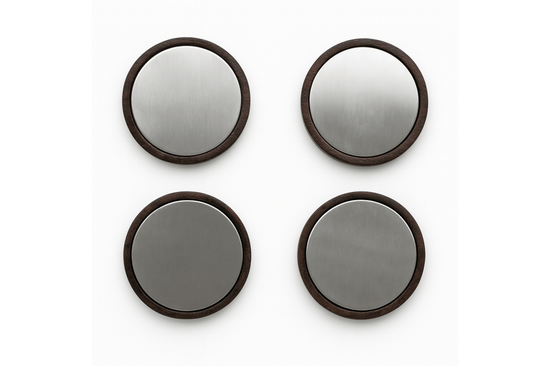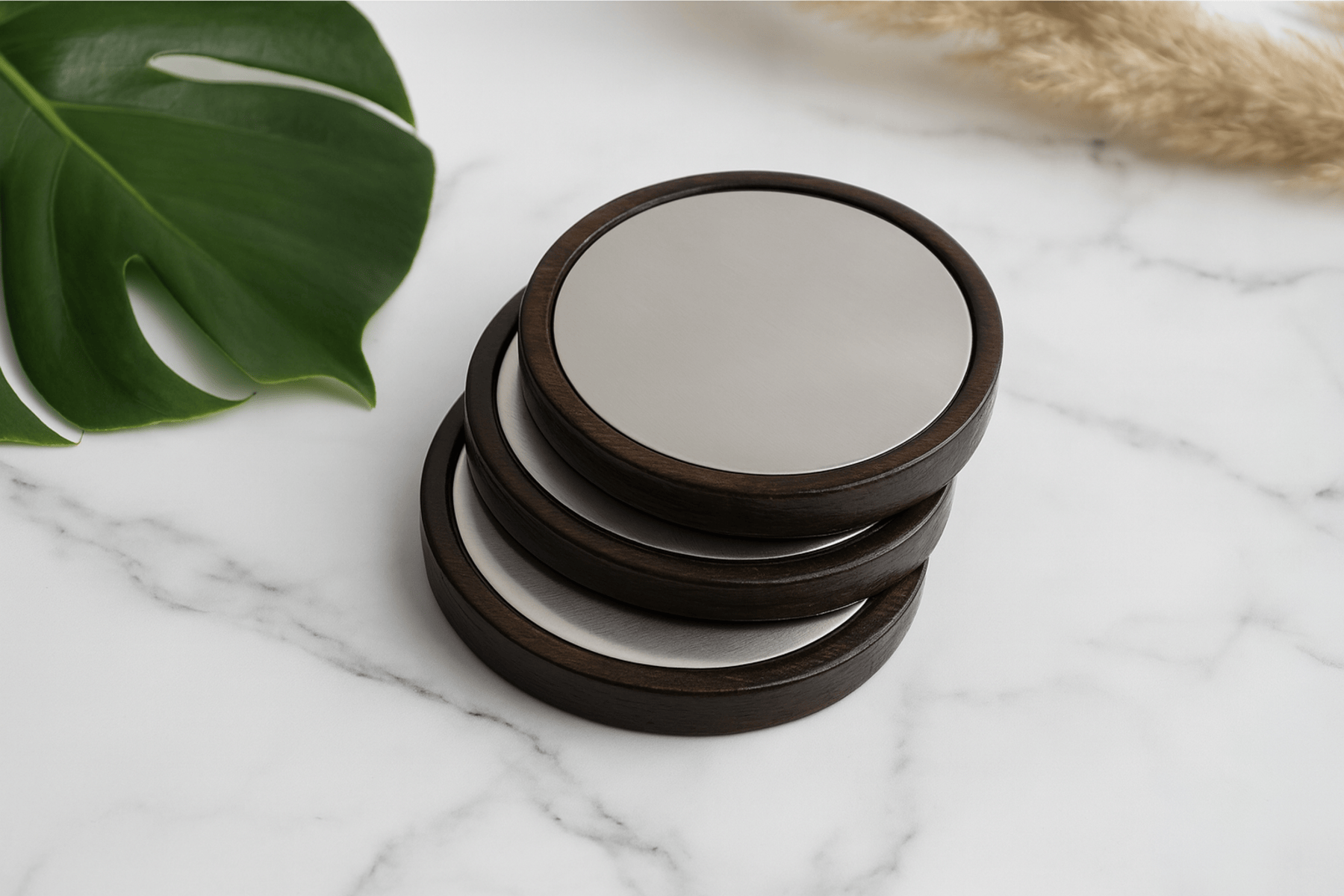 Sleek and durable, the SteelWood Coasters combine the warmth of rich wood with the modern elegance of stainless steel. Designed to protect your surfaces in style, these coasters bring a perfect balance of rustic charm and contemporary sophistication.