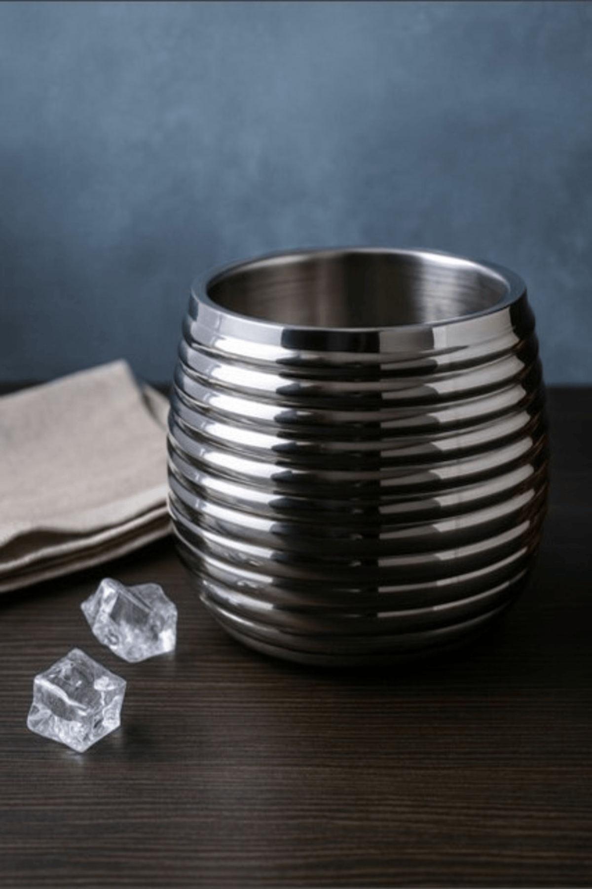 Keep your beverages perfectly chilled with this ribbed stainless steel ice bucket, combining modern elegance with durable, long-lasting functionality.
