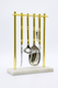 Elegant bar tool set with green marble-pattern handles and golden stand, crafted for luxury cocktail making and style.