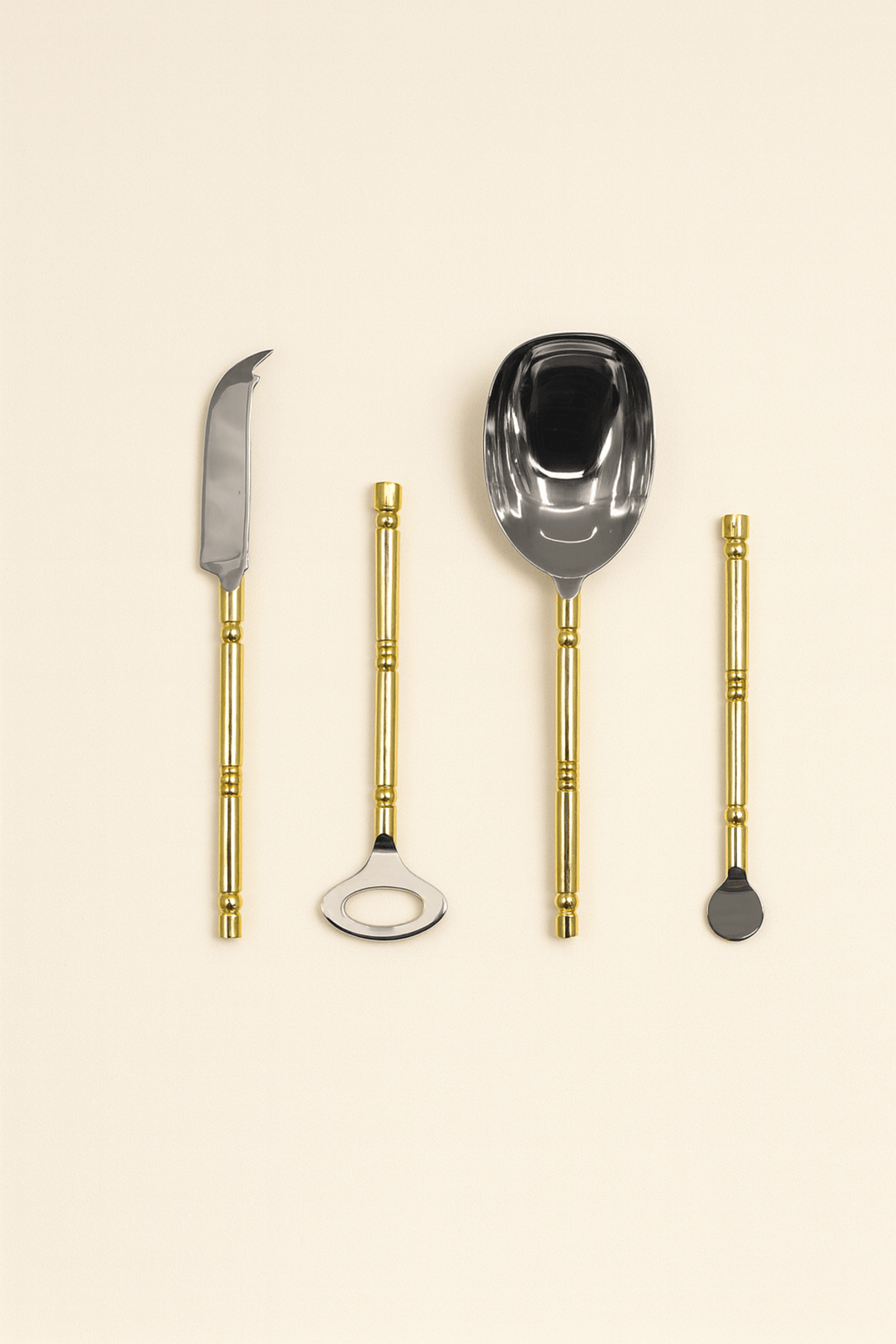 • Elegant 4-piece bar tool set with gold-toned handles.
